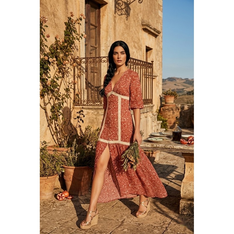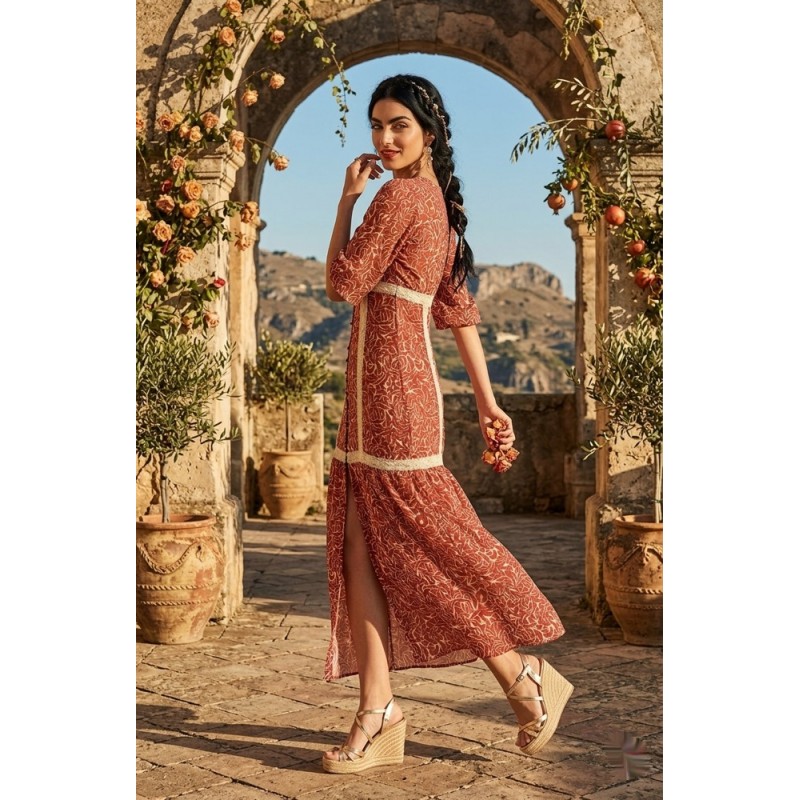 • Color: Estampado botánico en fondo teja/caldera.